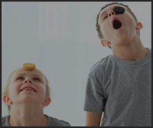 - Sienta a cada niño en una silla y dale una galleta a cada uno, todos deberán voltear su cara viendo al techo y colocar la galleta en su frente.