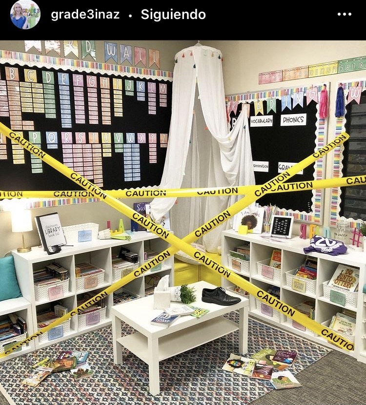 - NOTA: Te dejo una imagen de una escena del crimen que hizo una maestra con sus niños para una clase (@grade3inaz). De ahí puedes tomar inspiración para crear tu escena del crimen.